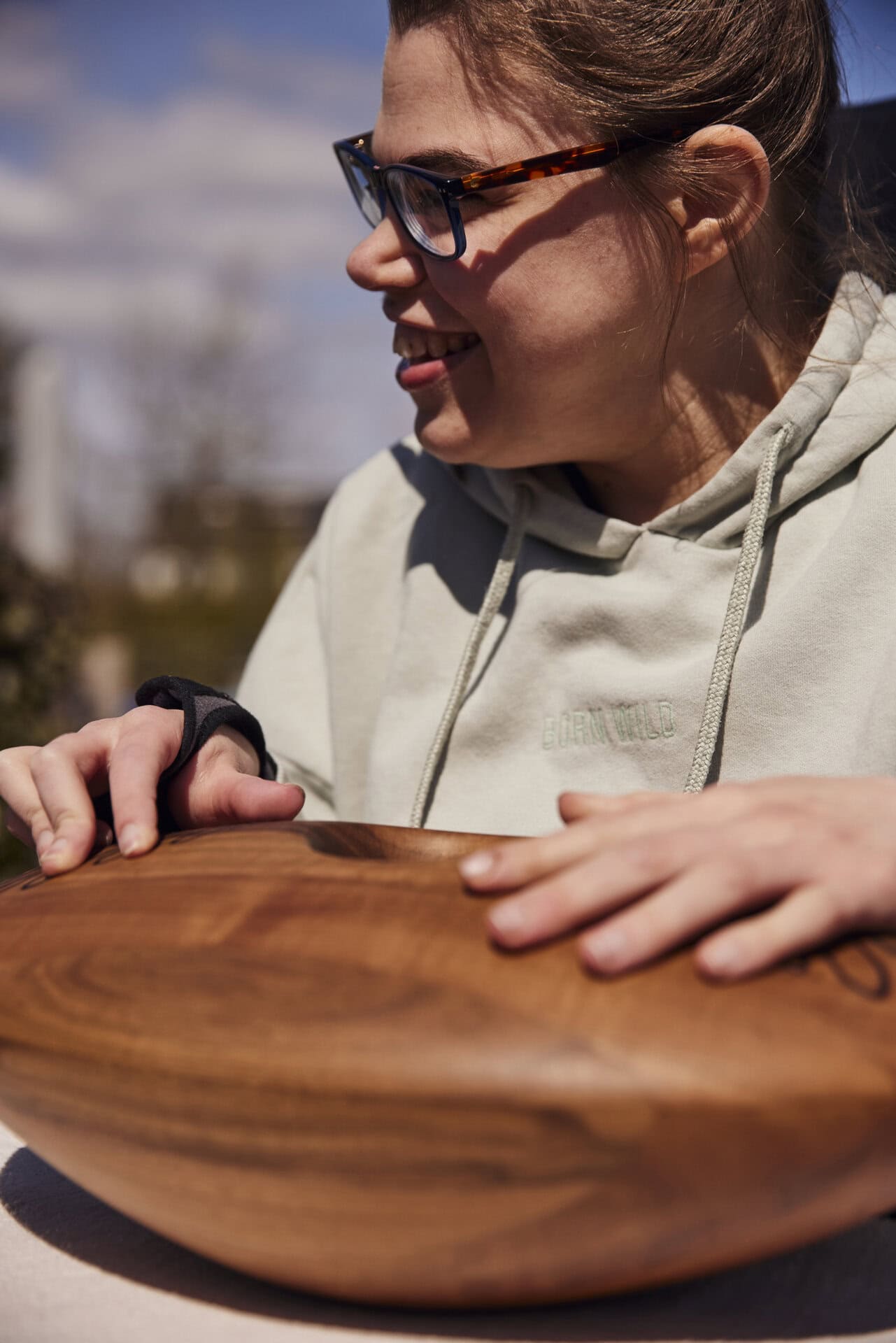 Le CRDL est un objet en bois de forme ellipsoïde qui peut être posé sur une table ou confortablement sur les genoux.