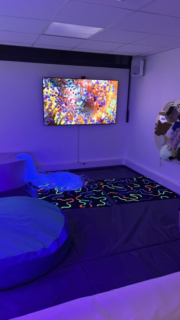 La Direction a décidé d’investir dans une salle Snoezelen réalisée par Pétrarque équipée d’un iSnoezz®. Ce tout nouvel outil se compose de 3 éléments :