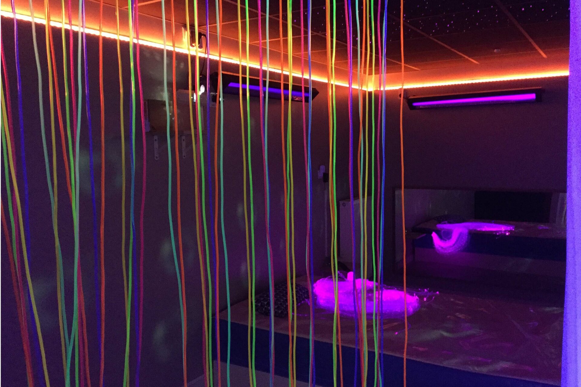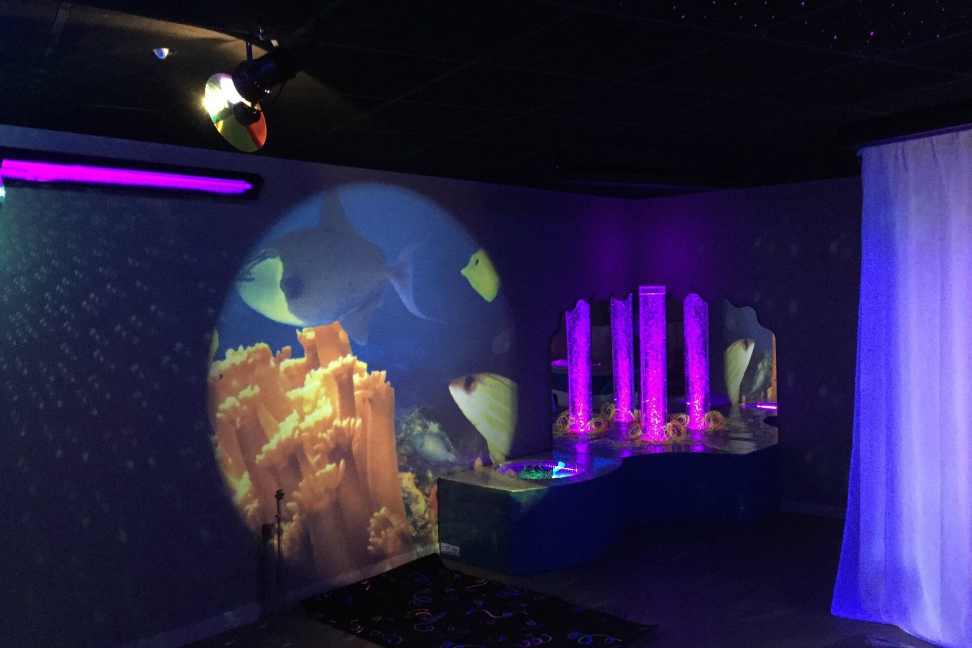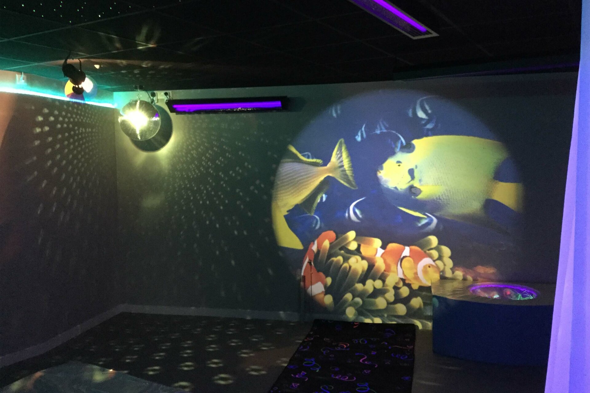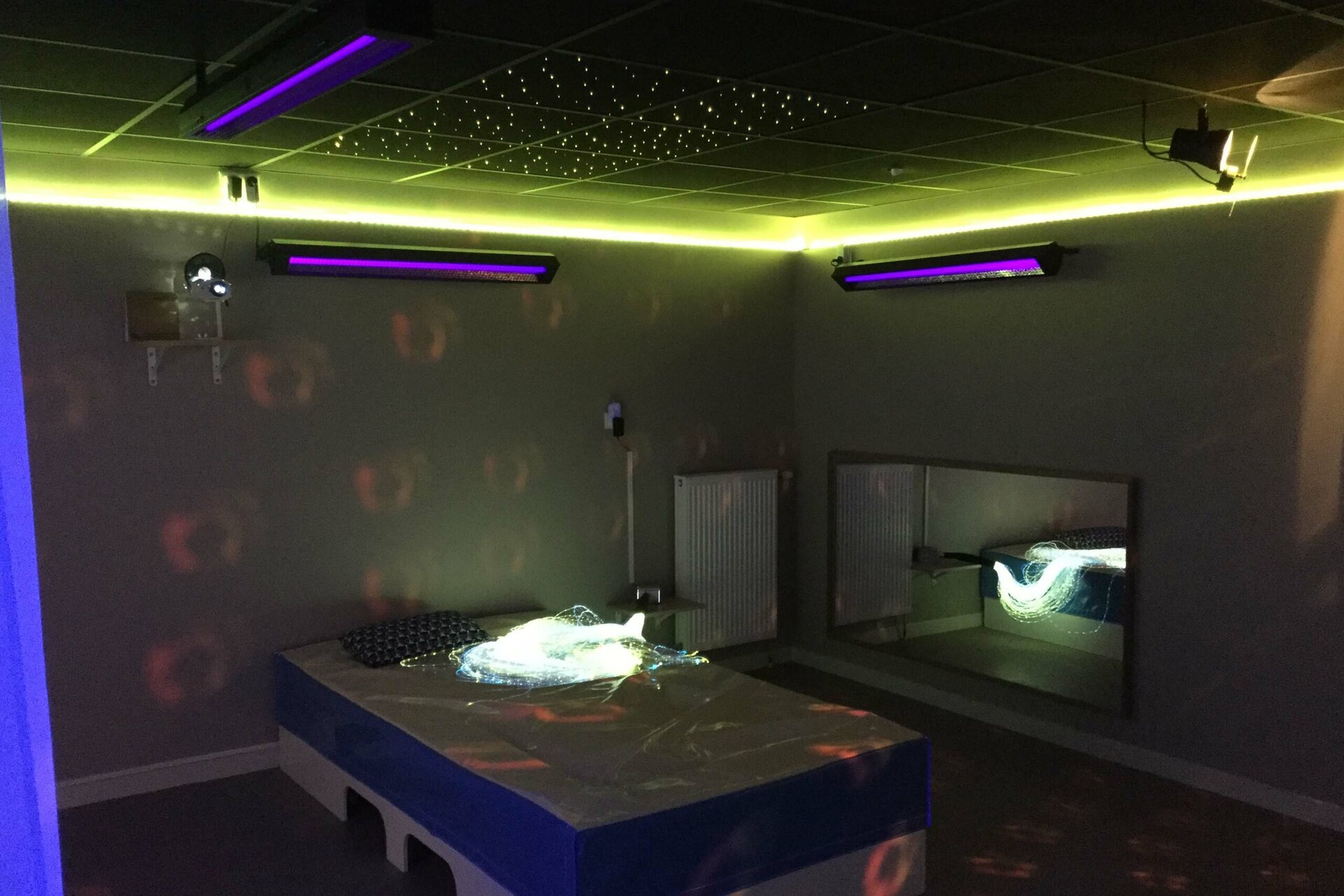 Zone dédiée à l’approche Snoezelen à l’IME les Rouissoirs qui est un semi-internat disposant de 39 places pour enfants et adolescents âgés de 5 ans à 18 ans, présentant une déficience légère ou moyenne, et qui ne peuvent momentanément ou durablement être maintenus dans le système scolaire ordinaire à temps plein.