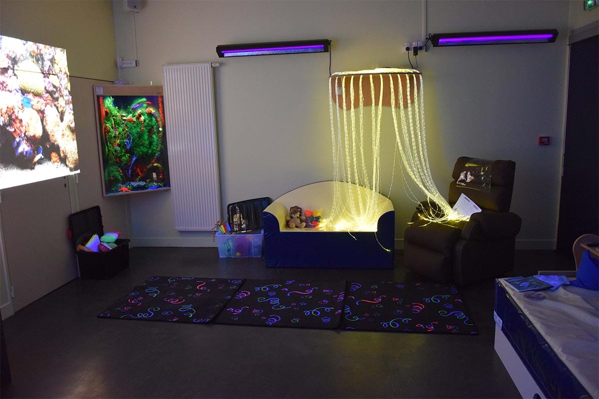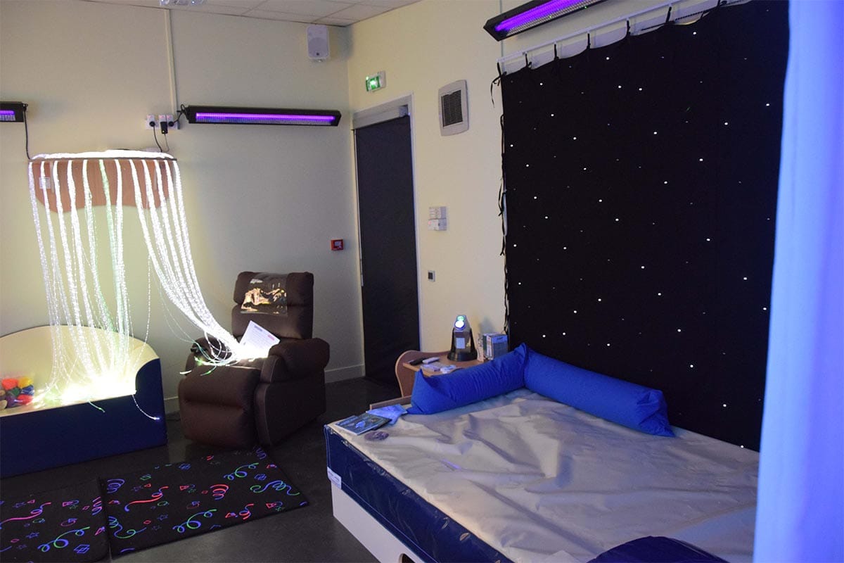 Pièce Snoezelen permettant la sensibilisation au concept Snoezelen de professionnels en situation d’accompagnement de personnes en situation fragilisées.