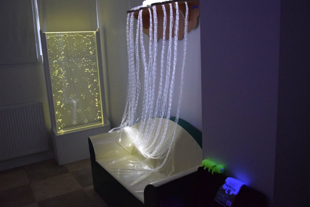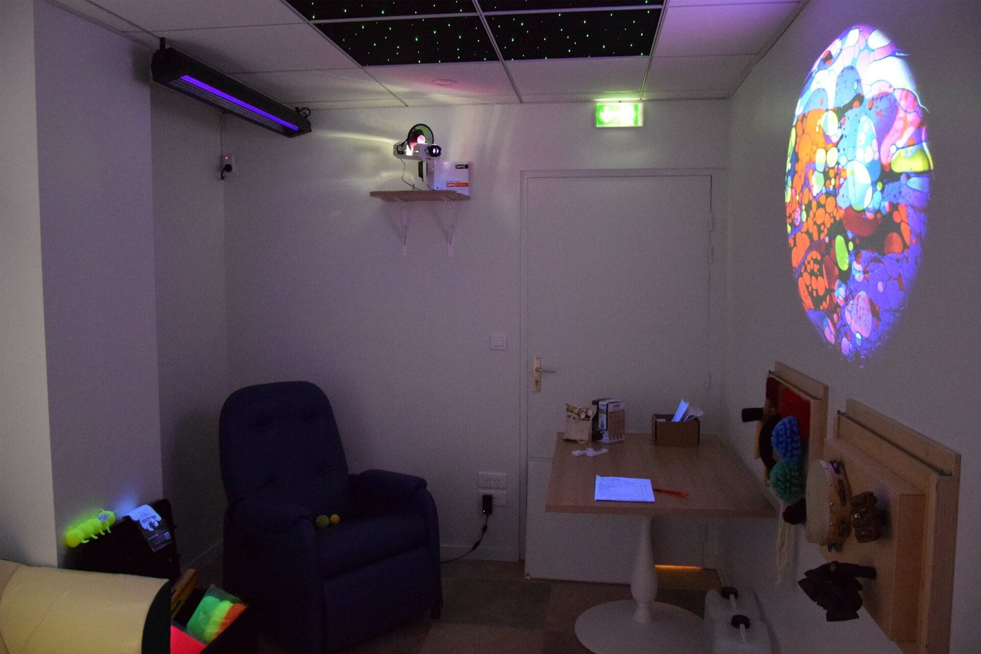Zone à ambiance Snoezelen à la résidence François Villon à Nemours, cette zone à ambiance Snoezelen permet de créer un espace sécurisant mais, est aussi adaptée à chaque pathologie des résidents.